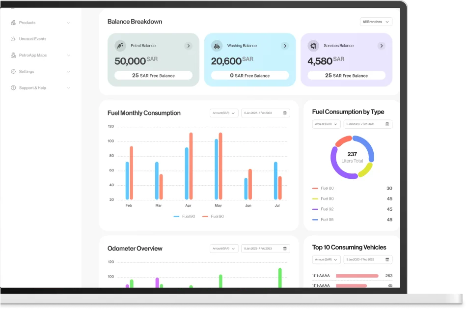 صُمم تطبيق PetroApp للنمو، حيث يوفر تكاملاً سهلاً لواجهة برمجة تطبيقات الأسطول، وتوافقاً عالياً مع أدوات الأعمال الرائدة. سواءً كنتَ تُضيف فروعاً جديدة أو تُوسّع أنظمتك، فإن واجهة برمجة تطبيقات إدارة الأسطول وميزات توافق نظام الأسطول لدينا تضمن اندماج PetroApp بسلاسة مع حزمة التقنيات الخاصة بك، الآن وفي المستقبل.